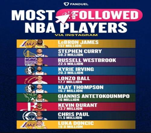 威少、欧文、球哥排3-5,克莱、字母哥、KD、保罗、东契奇也都进了前十,粉丝数不仅代表人气,也是影响力的体现,咱就是说老詹这现役传奇的号召力,真的没人能打啊....