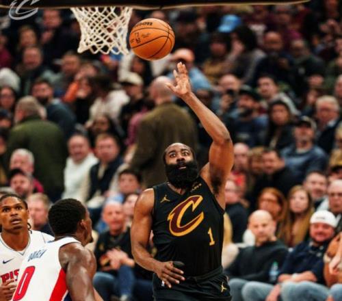 骑士成功复仇活塞,哈登18+7+6率队取胜,他在场时球队豪获8胜1负