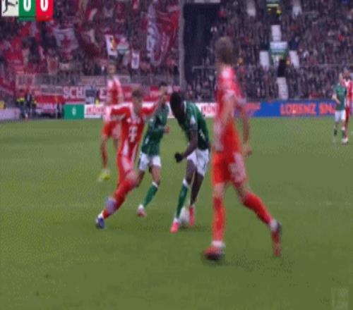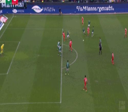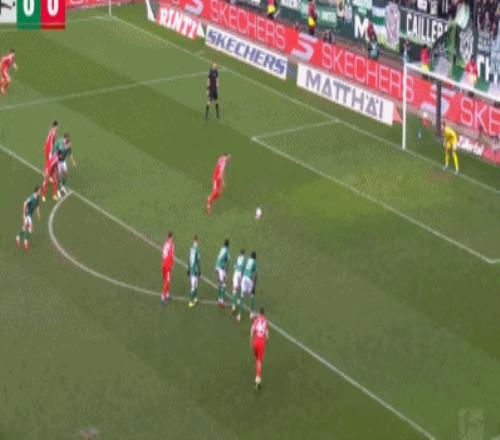 第29分钟,凯恩回撤接应,一脚手术刀直传打穿不莱梅的后防线,路易斯-迪亚斯左路高速插上,小角度射门被巴克豪斯扑出。