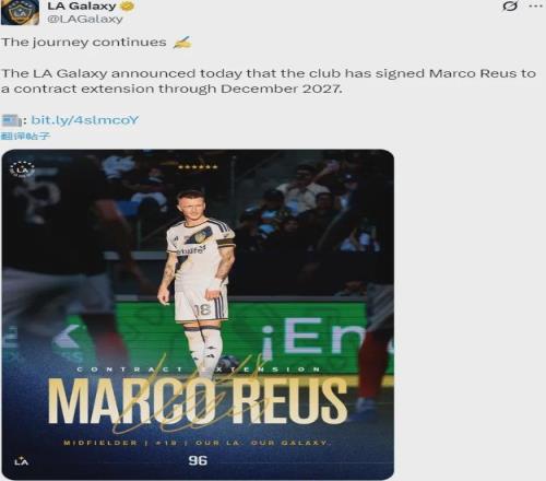 官方:洛杉矶银河宣布和罗伊斯续约到了2027年12月。