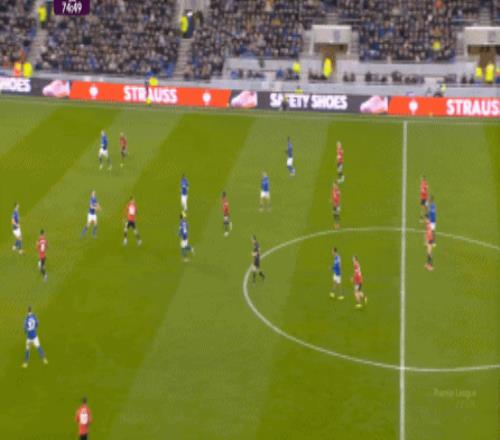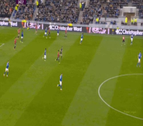 本场比赛的他,的确出现了很多问题,但在两线之间出现问题的球员,远不止布鲁诺自己,而这个时候,你就要看到埃弗顿这个对手的特殊之处,因为在中场区域,莫耶斯直接摆出了格耶和伊洛布格南两名黑人后腰。