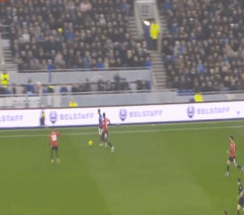 当然了,除了约罗这一点之外,曼联的中场球员集体表现不佳,梅努和布鲁诺都出现了多次因为身体素质不足而落入下风的表现: