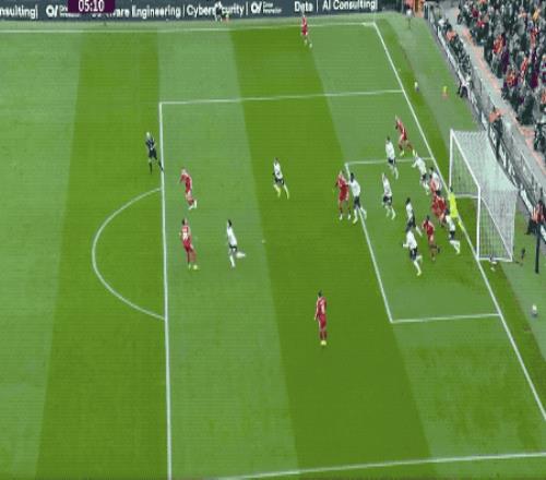 第43分钟,萨拉赫开出角球,鲍恩后蹭解围不远,埃基蒂克冷静回敲,麦卡利斯特外脚背凌空抽射建功,利物浦3-0遥遥领先,上半场结束,红军获得7次角球,3次转化为进球。安菲尔德仿佛变成了定位球实验室。