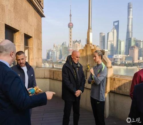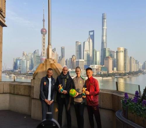 穆斯卡特及海港助理教练和澳大利亚女足前国脚格蕾丝、中国男足助理教练于汉超等合影。