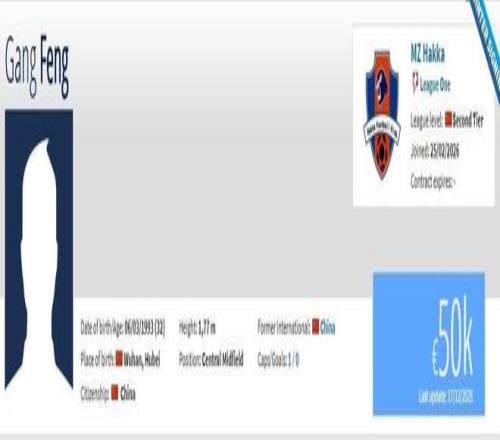 冯刚现年32岁,司职中场,此前球员效力于青岛西海岸,期间共出场60次,打进2球助攻8次。现在他在德转上的身价为5万欧元。