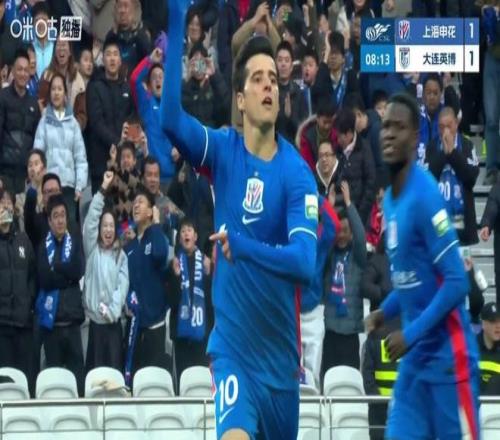 但很快大连英博防守端便犯了错误,高天意第8分钟任意球直接打门导致门将扑救脱手,特谢拉跟进补射破门,申花将比分扳为1-1。