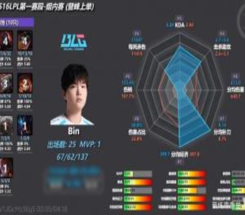 吸血鬼型上单Bin第一赛段数据雷达图:吃最多的经济打最少的伤害!