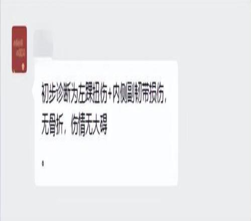 据了解,徐杰受伤后第一时间被送到医院检查。据篮球记者贾磊报道,徐杰的检查结果出来了,骨头和韧带都没事,只是硬伤,应该问题不是很大,球迷们可以放心了!也可以这样说,徐杰就是左脚踝严重扭伤。另据球迷群透露,徐杰左踝扭伤+内侧副韧带损伤,无骨折,伤情无大碍。不过徐杰肯定一时打不了比赛,从现场受伤情况来看,他起码要休息半个月以上。