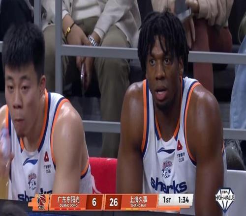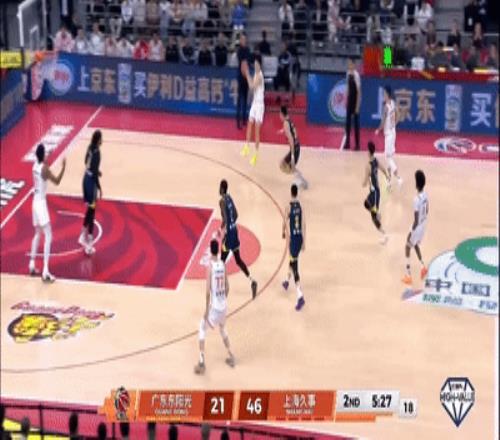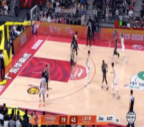 前半节广东三分全铁失误不少(胡队三分3中0,上空篮还不进),半节落后上海6-16。