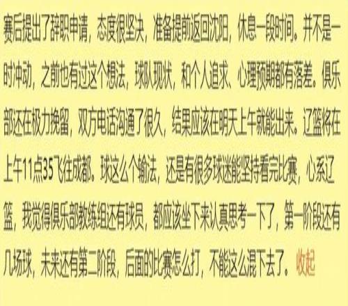 曾经的四冠强队辽篮,在客场输给新疆队,且末节仅仅只有4分进账,再次遭遇一波4连败后,忍无可忍,极度失望的主教练杨鸣,赛后便向辽篮投资方老刘家提交了辞呈。