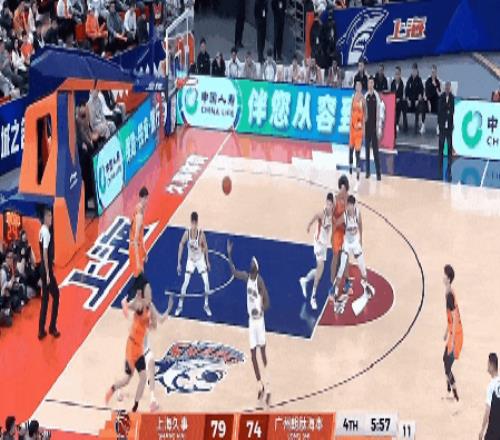 易边再战,上海男篮有不少个人的精彩发挥:王哲林展现梦幻脚步,古德温灵机一动的造3分犯规。