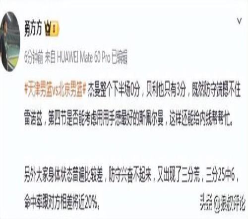 天津主场赢了15分,第四节轰出一波30-13,送北京最近十场比赛第六败,两边对比赛的专注度和调度调整不是一个级别。