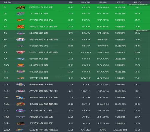 CBA最新排名:浙江广厦爆冷输吉林仍第1,山东输天津排名第4