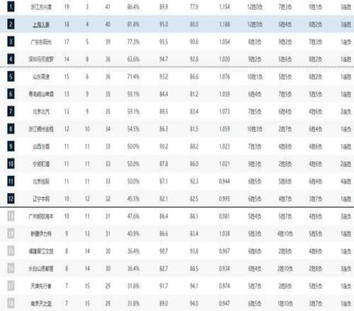 CBA最新排名:浙江广厦爆冷输吉林仍第1,山东输天津排名第4