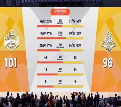 带着11分的落后,进入到了第四节单外援模式,按说,山东队还是有机会的,可惜的是,外援准星不够,高诗岩也没打开,使得天津队基本上维持着两位数的优势。尽管山东队一度追到只差4分,但终究未能逆转,最终客场爆冷,以96-101输给了天津队,未能为第一阶段画上完美的句号。