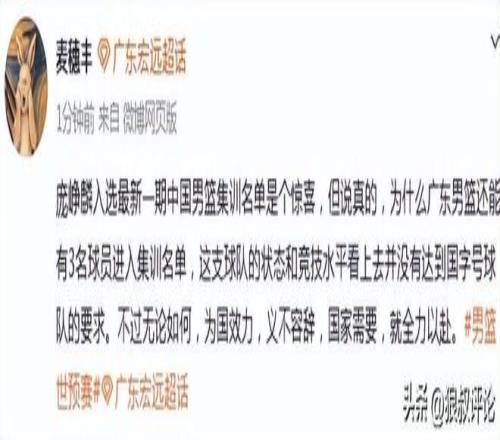 庞峥麟入选最新一期中国男篮集训名单是个惊喜,但说真的,为什么广东男篮还能有3名球员进入集训名单,这支球队的状态和竞技水平看上去并没有达到国字号球队的要求。不过无论如何,为国效力,义不容辞,国家需要,就全力以赴。