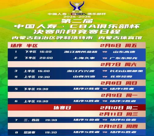 随着2月3日CBA常规赛第一阶段落幕,CBA常规赛的战火按下了暂停键。接下来,第二届CBA俱乐部杯赛决赛阶段,将于2月6日,正式打响!8支球队,将血战7天,这一次,看谁能加冕冠军吧!