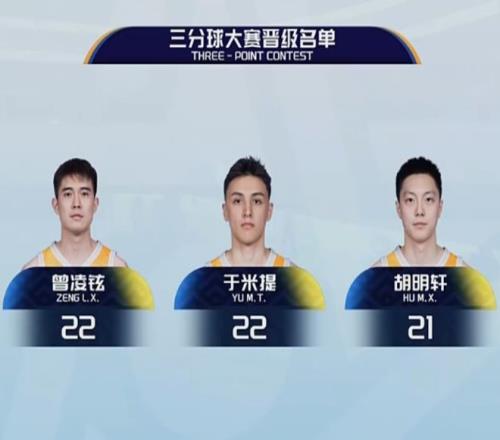CBA三分大赛:胡明轩22分+加赛134碾压于米提第2次夺三分王
