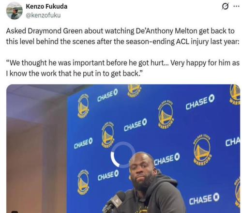面对梅尔顿这样的表现,追梦赛后坦言:“早在他受伤之前,我们就深知他的重要性,现在很高兴看到他健康重返赛场,真的由衷为他感到高兴。”