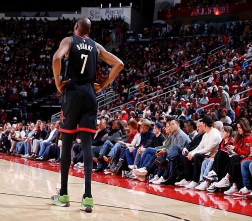本场比赛中,火箭的先发大前锋凯文-杜兰特(Kevin Durant)的表现还是存在着一定的问题的。杜兰特全场出场36分48秒,投篮24中11,三分线外9中4,罚球9中7,得到了全场最高分33分外加8篮板2助攻1盖帽的数据,还有2次失误和1次犯规,正负值为+1。杜兰特在上半场比赛中的表现一塌糊涂,进攻效率仅为13中4,得分能力完全没有发挥出来。不过到了下半场比赛,杜兰特也是找回了自己的手感,他在下半场比赛中的进攻效率为11中7,加起来拿到了21分,与上半场比赛完全是判若两人。火箭能够在下半场比赛中稳住局面并且最终取得比赛的胜利,也和杜兰特在下半场的大爆发密切相关。不过反过来说,杜兰特如果能够在上半场比赛中有更好的表现,火箭也可能会赢得更加轻松一些。