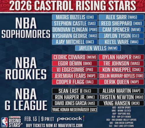 最后还是再提醒一遍,今年NBA全明星新秀挑战赛在2月14日进行,杨瀚森跟所有发展联盟球员一起被编入奥斯汀·里弗斯队,记得关注。