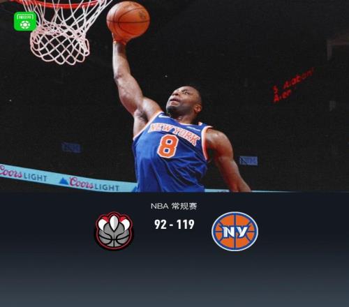 第四节猛龙马穆凯拉什维利拿下7分,尼克斯约什-哈特拿下11分,最终猛龙92-119不敌尼克斯