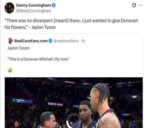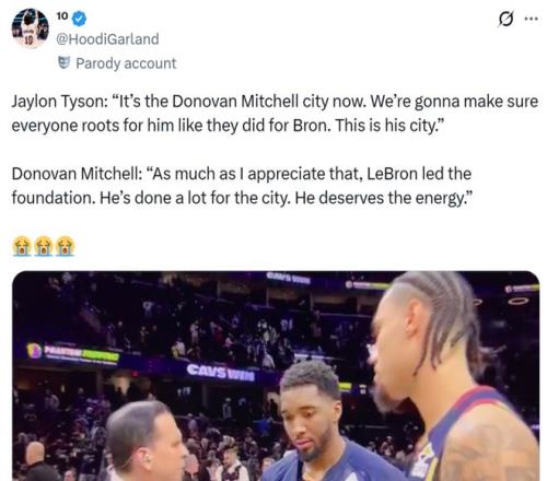 同时赛后还是发生了争议性的一幕,当记者询问有关詹姆斯父子本场重回克城的话题时,小将泰森打断提问说道:“现在这是米切尔的城市。”