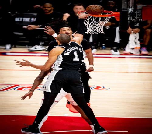 易地再战,文班亚马封盖阿门,巴恩斯外线打铁,阿门扣篮打成了2+1,文班亚马2罚全中,卡斯尔暴扣,杜兰特回敬三分球。阿门抢断,史密斯持球反击被抢断,文班亚马中投得分。阿门补篮打进,文班亚马进攻犯规,阿门试图隔扣文班亚马未果。史密斯进攻犯规,福克斯轰进远投。