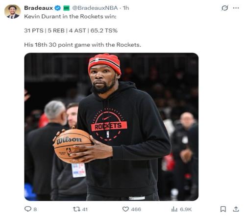 或许你们无法相信,火箭本赛季最硬的人就是杜兰特这个老头,他本赛季只缺席两场比赛,每次的背靠背他都坚持出战了,他场均36.8分钟仅次于阿门的37.3分,要知道阿门才23岁,杜兰特对篮球的热爱真是到了痴迷的程度,过去五场比赛打了193分钟愣是没叫累。