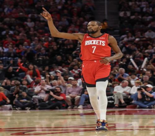 而根据统计显示,最近5场比赛,杜兰特真的是疯狂输出。他在5场比赛里场均可以贡献31.2分、5.8篮板外加3.6助攻,命中率也非常亮眼,达到了53%,三分命中率达到48%,罚球命中率高达87%。杜兰特真的是在进攻端打疯了。如果没有他在进攻端的输出,火箭队只靠着阿门和申京,以及状态时好时坏的谢泼德,真的不一定能够取得这么多的胜利。