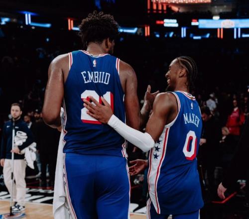 本赛季前25场比赛,恩比德打打停停,76人整体表现是:恩比德在场总是输分,要靠马克西+埃奇库姆带着格莱姆斯等人追回来填坑。关于恩比德和乔治的累赘合同,我们也分析了很多,极端情况是,如果送不出去,76人可以等到27年夏天延期买断恩比德的合同,或者等到今年夏天延期买断乔治的合同,只能二选一,没那么多空间。因为76人在前半段的比赛中,年轻人已经展现出上升趋势,不怕老将占着薪资空间,但就怕他们堵住年轻人上升通道。原以为随着恩比德慢慢稳定出场,76人会逐渐下滑,但结果和想的不太一样。