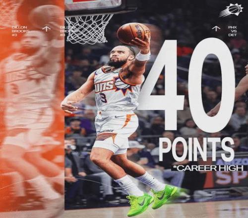 值得一提的是,最近3场比赛布克和杰伦格林均因伤缺阵,而狄龙在此期间分别得到26分、26分和40分,场均数据为30.7分5.3板3助1.3帽1断,三项命中率54%、47%和90%,跨入180俱乐部。