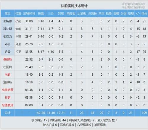 快船篮板球比掘金少了9个,罚球少了11个。掘金三分28中16,命中率高达57.1%。除了约老师,掘金还有三人20+:小哈达威22分、沃特森21分4板3助、穆雷20分4板9助。哈登25分5板9助、伦纳德21分3板6助、科林斯18分6板4助。