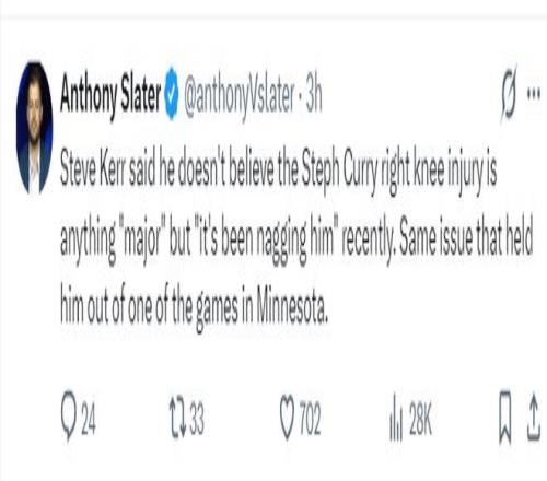 此前因为明尼阿波利斯的暴风雨问题,勇士VS森林狼的比赛延续了一天,实际上库里在抵达明尼阿波利斯之前右膝就已经有不适感,1月24日训练后就已经出现症状,但库里还是带伤打了对阵森林狼的比赛。