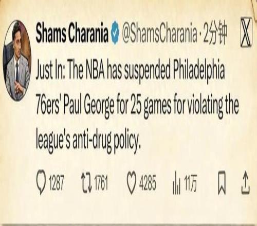 北京时间2月1日,就在联盟各支球队都在紧锣密鼓地展开引援操作的时候,名记Shams突然报道:费城76人前锋乔治因为违反联盟禁药政策,被联盟处以禁赛25场的处罚。