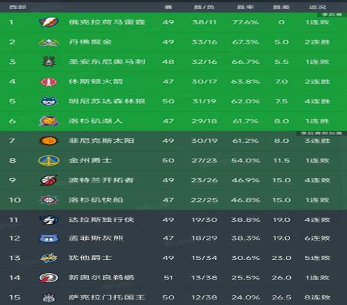 西部最新积分榜