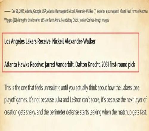 美媒建议湖人3换1老鹰极品3D,场均20+4后卫加盟湖人,驰援东詹