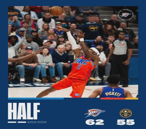 亚历山大半场7中5独得15分3板7助3失误,卡森-华莱士5中3拿到11分。下半场约老师终于开始发力,第三节打了6分钟,掘金71-74仅落后3分。亚历山大和华莱士下起三分雨,霍姆格伦大帽约老师和穆雷,雷霆一波15-3拉开到15分以上。