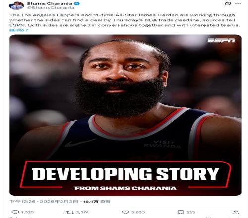 Shams:哈登下赛季合同只有1300万的部分保障,他仍然想去争冠球队