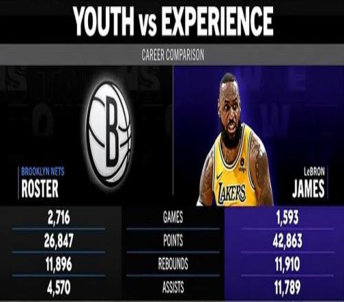 赛前,美媒ESPN对本场比赛进行了胜率预测,湖人队胜率高达66.6% ,篮网胜率则仅有33.4% ,对比明显。