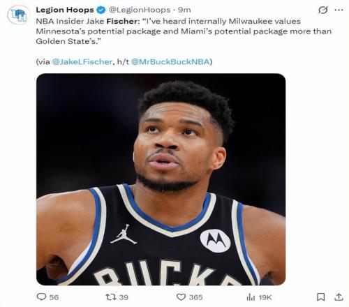 根据NBA记者杰克-费舍尔的报道,密尔沃基雄鹿队认为热火、森林狼的筹码比金州勇士队更好。