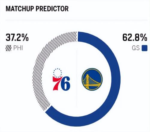 这是两队本赛季的第二次交手,上一次在76人主场的交锋中,勇士以1分之差憾负。赛前,美媒ESPN对本场比赛进行了胜率预测,勇士队胜率意外高达62.7% ,优势明显,76人队胜率则仅为37.3% ,让人诧异 。
