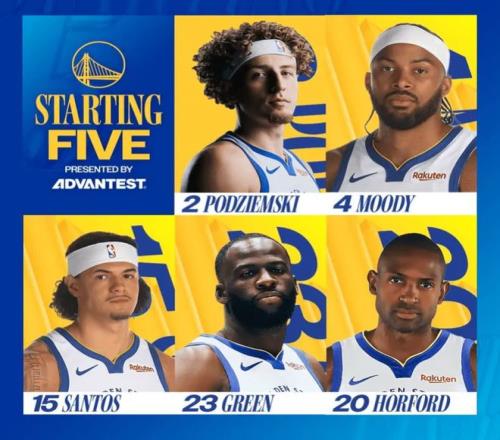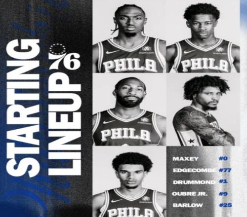 首发阵容方面,76人队这边,保罗·乔治被禁赛25场,恩比德因背靠背管理缺席,教练排出的首发五人组为:泰雷斯-马克西、VJ-埃奇库姆、凯利-乌布雷、多米尼克-巴洛和安德烈-德拉蒙德;勇士队这边,巴特勒赛季报销、库明加缺阵,再加上库里的伤病总计6人缺战,科尔继续变阵,启用本赛季的第22套首发阵容,则为:吉-桑托斯、摩西-穆迪、布兰丁-波杰姆斯基 、德雷蒙德-格林、霍福德。