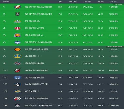 随着湖人4分险胜,勇士逆转太阳,西部最新排名出炉!火箭第4