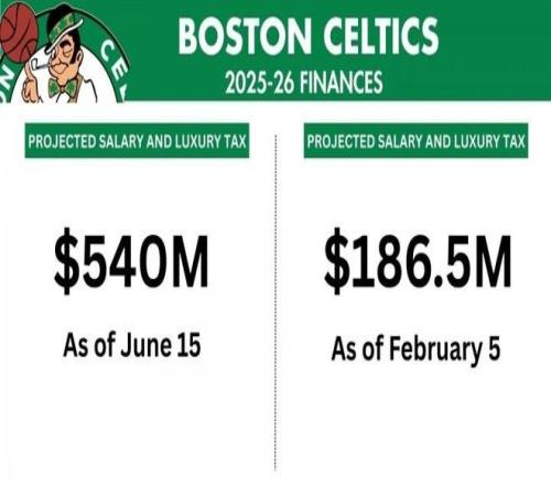 他们成功将球队本赛季的总开支从恐怖的5.4亿美元(其中奢侈税高达3.2亿)降至1.865亿美元,完美地避开了奢侈税起征线。这一番操作,总计为老板节省了3.535亿美元的真金白银,一举打破了NBA历史纪录。在金钱的赛场,凯尔特人已经赢得了赛季总冠军。