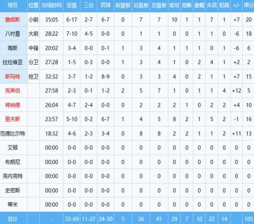 湖人数据如下: