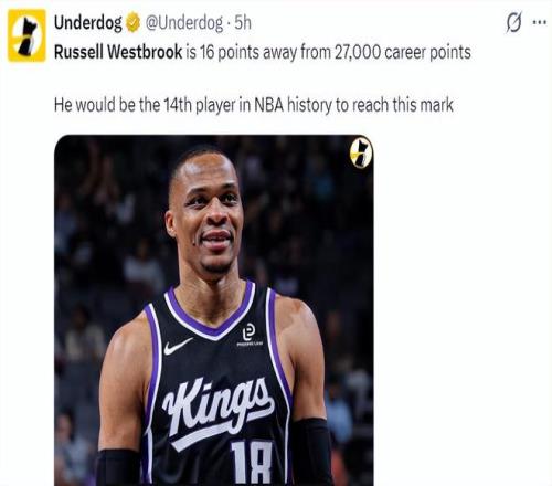 北京时间2月10日,国王后卫拉塞尔-威斯布鲁克达成了27000分里程碑,37岁的威少在历史得分榜上排在第14位,他距离第13的埃尔文-海耶斯只差313分,国王这支摆烂的球队剩下的唯一亮点就是威少,此役后国王已经吞下13连败。
