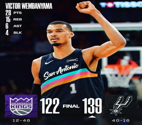 常规赛,马刺主场139-122战胜国王。