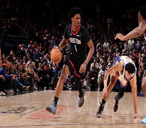 本场比赛中,火箭的先发控卫阿门-汤普森(Amen Thompson)的表现显然是非常一般的。阿门全场出场41分18秒,投篮9中5,三分线外2中0,罚球4中2,得到了12分10篮板7助攻3抢断1盖帽的数据,其中还包括了4个前场篮板,还有3次失误和1次犯规,正负值为+5。阿门在进攻端的贡献度还是比较有限的,他在外线投篮方面的能力又一次被放大了,他还是没有办法通过自己的努力得到更多的分数,他对于球队的负面影响也是肉眼可见的。阿门是球队的先发控卫,但是在进攻端只能为球队提供这样的帮助,确实是差了一些的。阿门在防守端的表现依然是可圈可点的水平,这一点确实是值得肯定的,但是很显然,以球队对于他的期望值,这样的表现也是远远不够的。