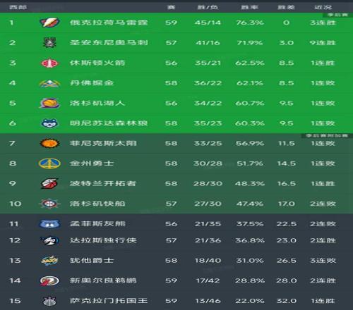 NBA积分榜又变了!马刺10连胜,火箭守住第3,掘金大胜19分排第4